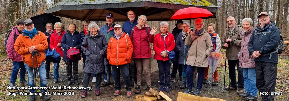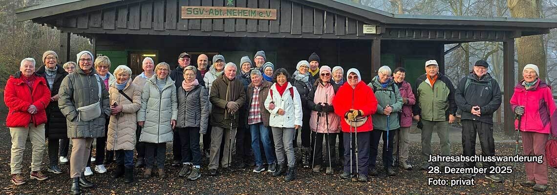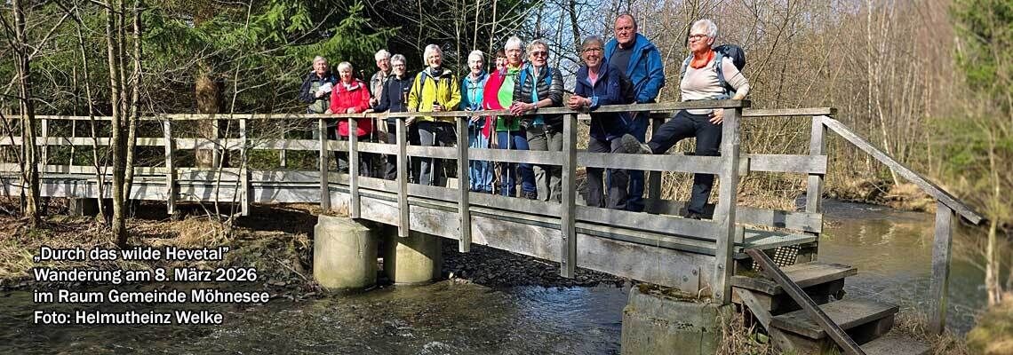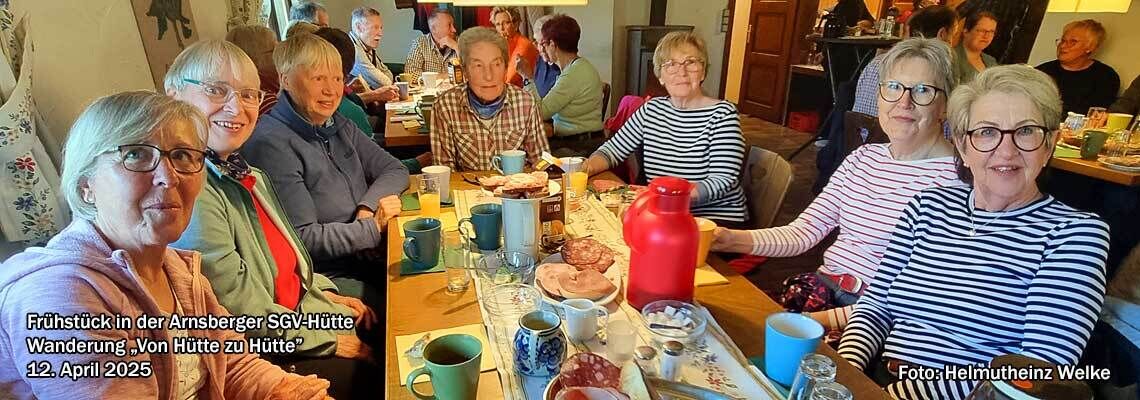 Wir beteiligen uns am Samstag, dem 28. März 2026 an der Gemeinschaftswanderung der Arnsberger SGV-Abteilungen „Von Hütte zu Hütte”. Die Teilnehmenden fahren mit dem Bus um 8.45 Uhr vom Busbahnhof Neheim nach Müschede und wandern dort 700 Meter bergauf zur SGV-Hütte, wo ein reichhaltiges Frühstück zum Preis von 9 Euro serviert wird.