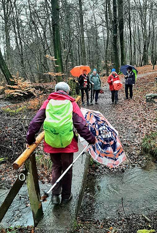 Elisabeth und Maria Bargel als Wanderführerinnen hatten den interessanten und abwechslungsreichen Rundweg ausgesucht. Vom Hexenteich bei Menden ging es zum Europaplatz am Wildwald Voßwinkel und durch die Wolfskuhle wieder zurück zum Ausgangspunkt.
