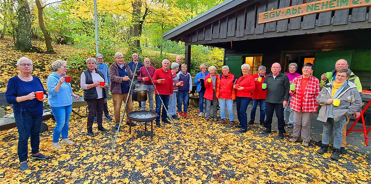 Nach wie vor großer Beliebtheit erfreuen sich unsere sogenannten „kug“-Wanderungen (kug = kurz und gut). An der letzten in diesem Jahr beteiligten sich gleich 23 Wanderer und Wanderinnen. Zum Abschluss servierte Wanderfreund Wilfried Hellmich den Teilnehmern an unserem Wanderheim einen zünftigen Holzfällerkaffee.