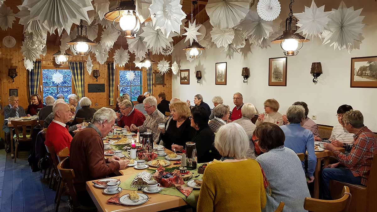Volles Haus bei unserer vorweihnachtlichen Feier im festlich geschmückten Wanderheim! Vierzig Personen waren der Einladung zu unserem gemütlichen Beisammensein im Advent gefolgt und erlebten eine stimmungsvolle Veranstaltung mit Kaffee, Kuchen, Plätzchen, Kerzenschein und Weihnachtsmusik.